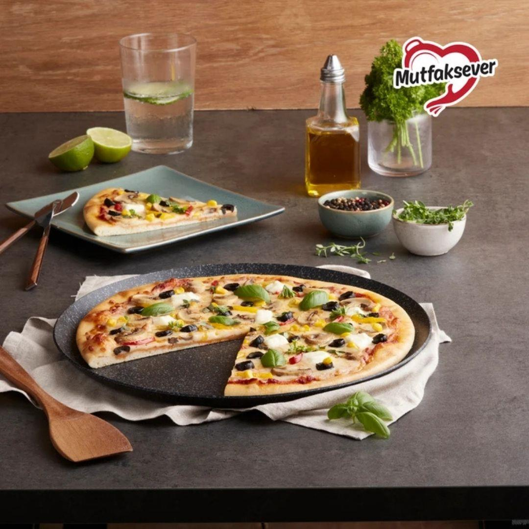 Pizza tavası fırın kullanımına uygun geliştirilmiştir. Ocak üzerinde gözleme pişirmek için de idealdir.
